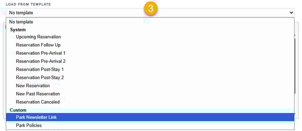 - Since the guest is preselected when initiating an email from a reservation, you will just need to select your custom template using the Load From Template dropdown.