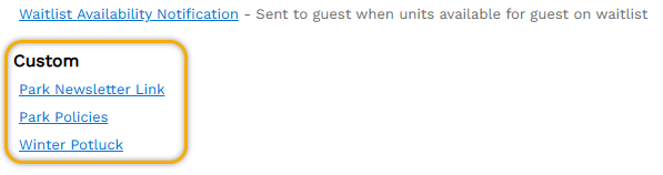 A custom email template may be used in the very same manor as standard email templates: from the main menu's Guest dropdown or from a guest's reservation.