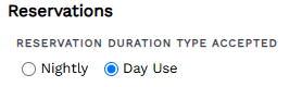 Day Use Reservations are perfect for pavillions, shared event spaces and single day use spaces on your property.