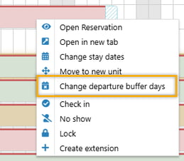 Departure buffer days are designated periods automatically padded to the end of a reservation. These are often used for cleaning, routine maintenance, or preparing for the arrival of the next guest. Buffer days are configured within a unit's settings and can help you ensure a smooth transition between guests. Once added to a booked reservation, buffer days may be managed from the grid or in a reservation's details page.