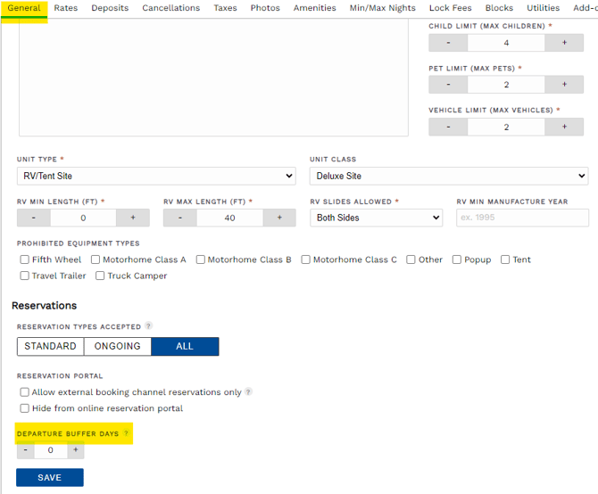 - You will be taken to the unit's General tab, scroll down to Departure Buffer Days