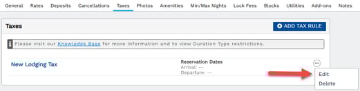 If there is an existing tax rule... update the associated tax. On the tax, click 3 dots > Edit.