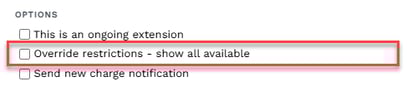- If you want to move the guest and do not see the desired unit, check the box to "Override restrictions" then click the unit dropdown again. The list will update to show all unoccupied units.