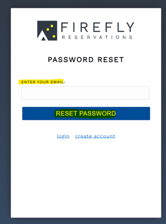 If you have forgotten your password or it has expired, you can reset it on the Firefly Reservations login screen by clicking "forgot password." Every 90 days your Firefly Reservations password will expire and need to be reset.
