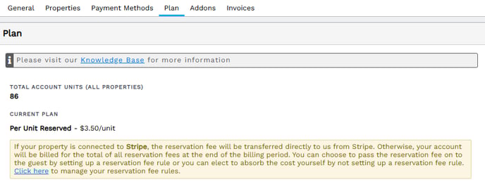 Once you have a payment method on file, you will need to confirm your payment plan. Click the Plan tab and select the $3.50/reservation plan.