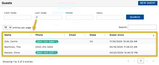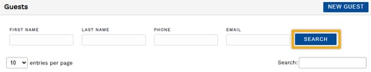 - To find a guest not displayed, enter the guest's information in the search fields and click Search
