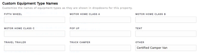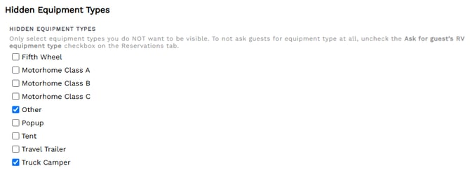 Hidden Equipment Types If you want to hide certain equipment options from showing to guests, you can check the box next to the equipment type.