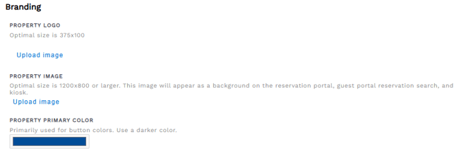 Under "Branding" you can add your property logo, property image, and update the primary color used for buttons.