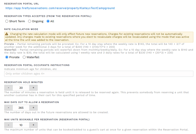 The Reservations tab is where you can find your reservation portal URL and customize the look, feel, and settings of the online reservation portal. Firefly offers many settings and options allowing you to create a fully customized booking experience that meets the needs of your park and guests.