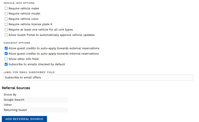 Vehicle Info Options Check the box next to the information you wish to require from your guests when adding a vehicle to the reservation
