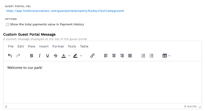 TIP: After saving your reservation portal instructions, scroll to the top of the Reservations tab and click on your Reservation Portal URL. This will open your reservation portal in a new browser tab allowing you to visually confirm the presentation of your portal instructions.